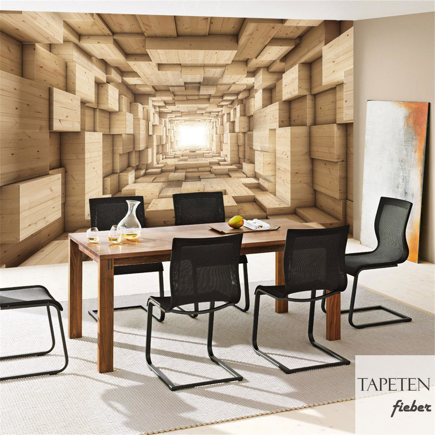 Fototapete Abstrakt Holz Kasten Kisten Rechteck Tunnel 3D no. 944