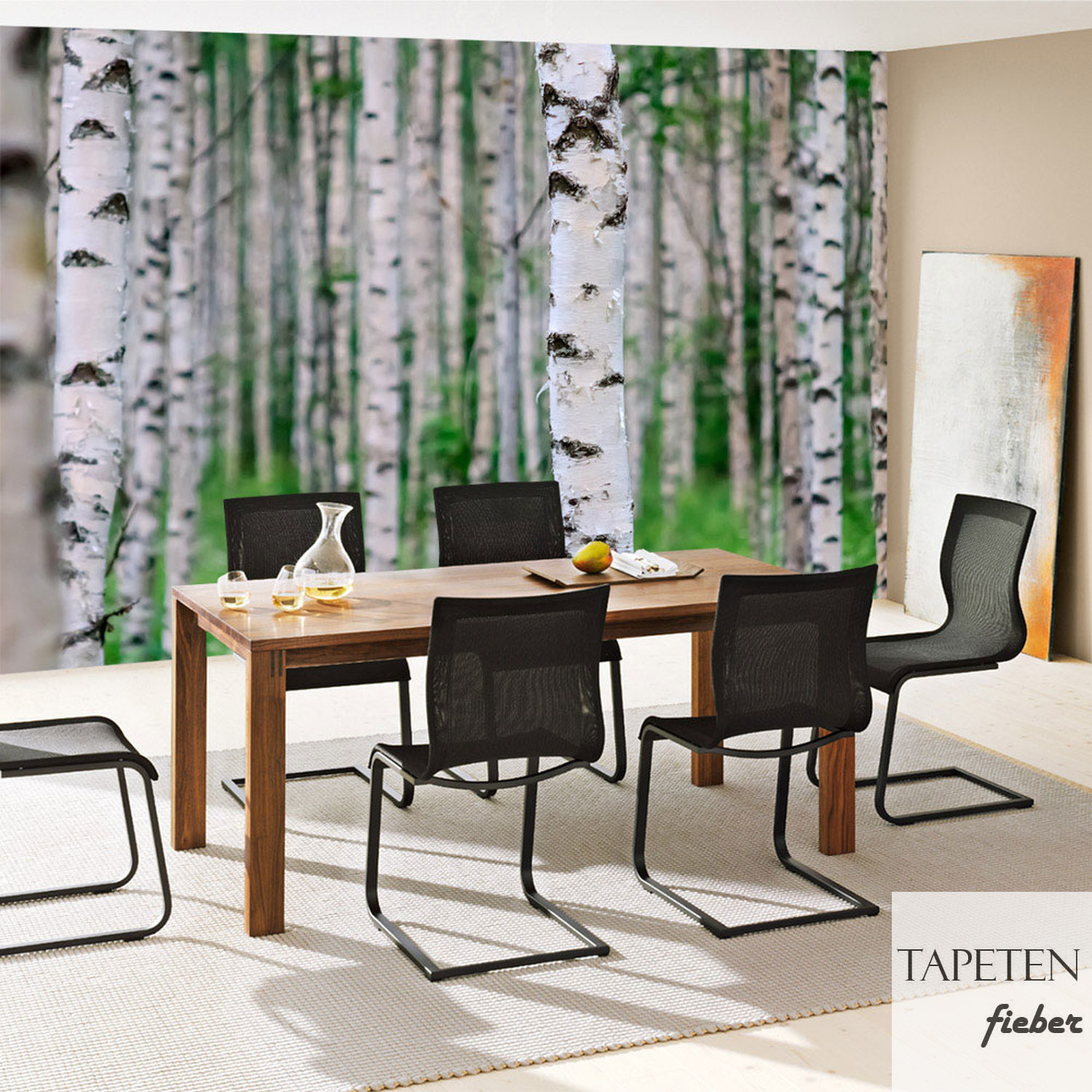 Fototapete Birkenwald 3D perspektive Birke Stämme Wald