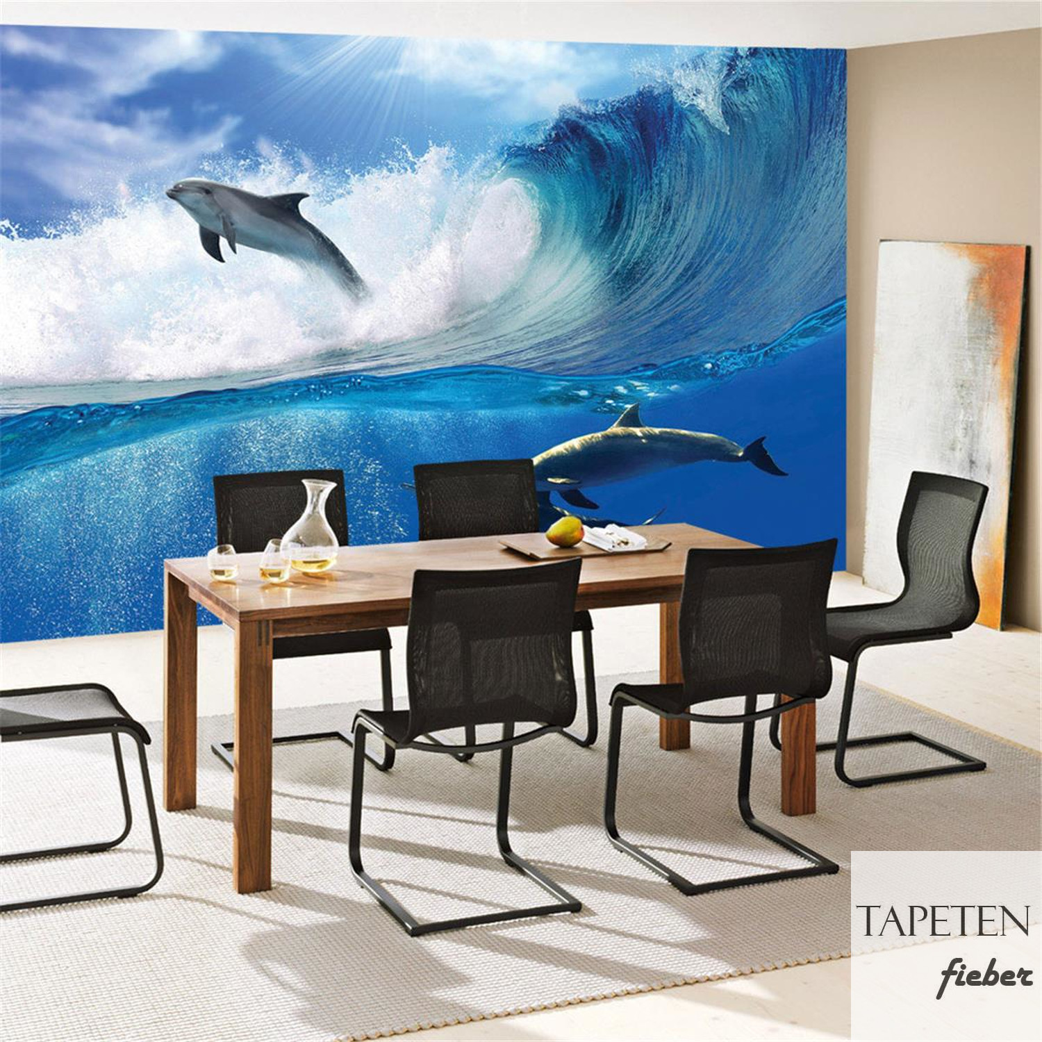 Fototapete Delfin Meer Welle Tropfen Sonne Wasser no. 531