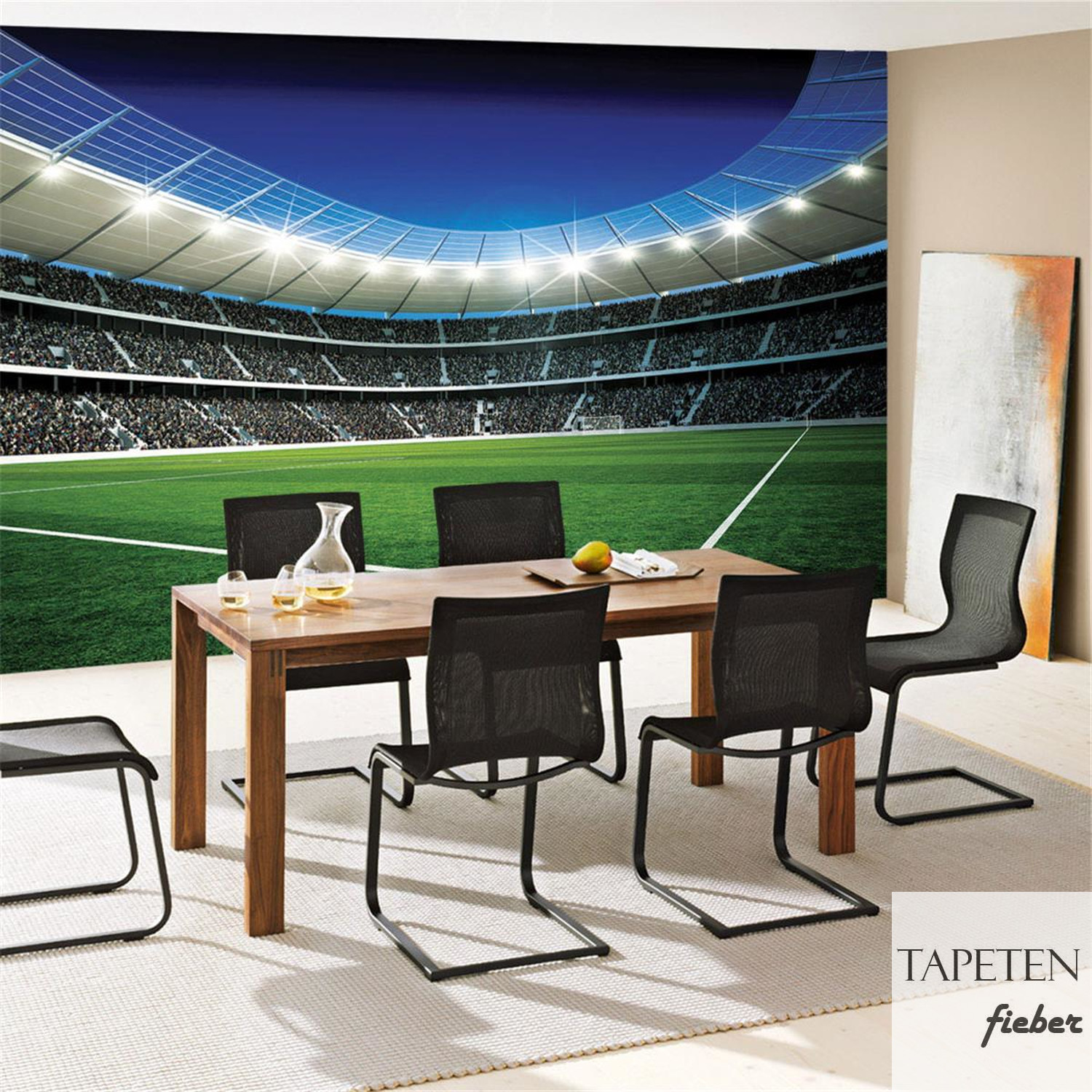 Fototapete Flutlicht Tor Tribüne Fans Lichter Sterne Nacht no. 945