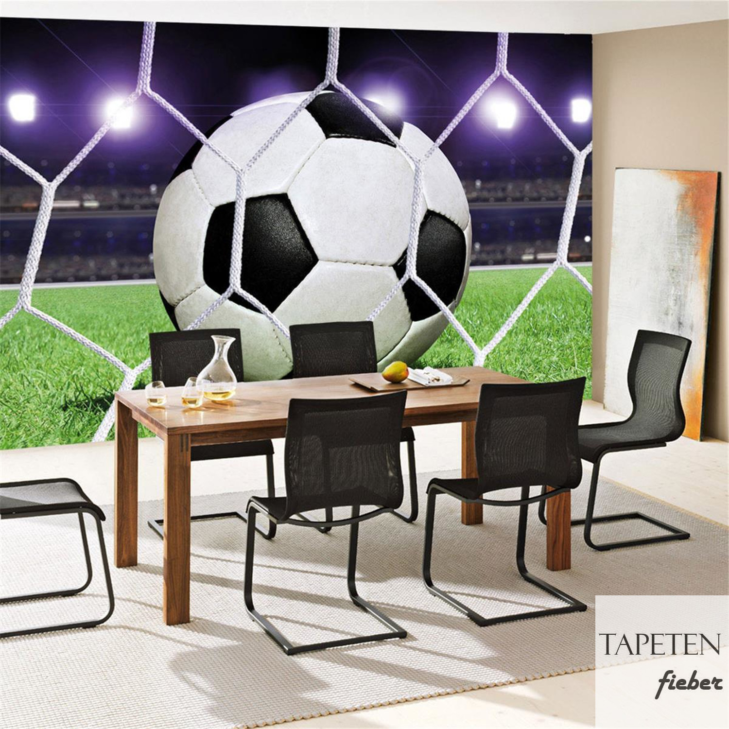 Fototapete Fußball Netz Rasen Licht Stadion bunt weiß no. 431