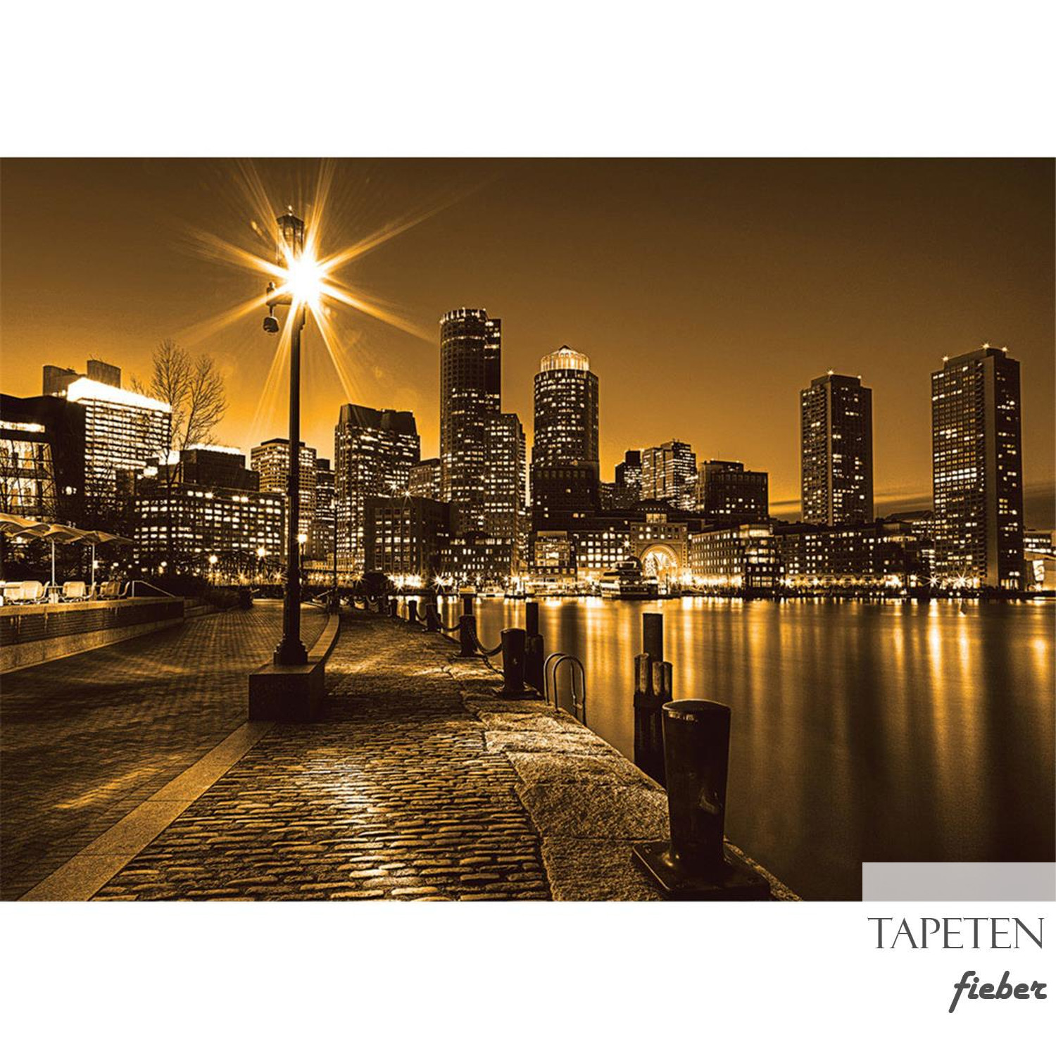 Fototapete Laterne Nacht New York Skyline Lichter Fluss no. 861