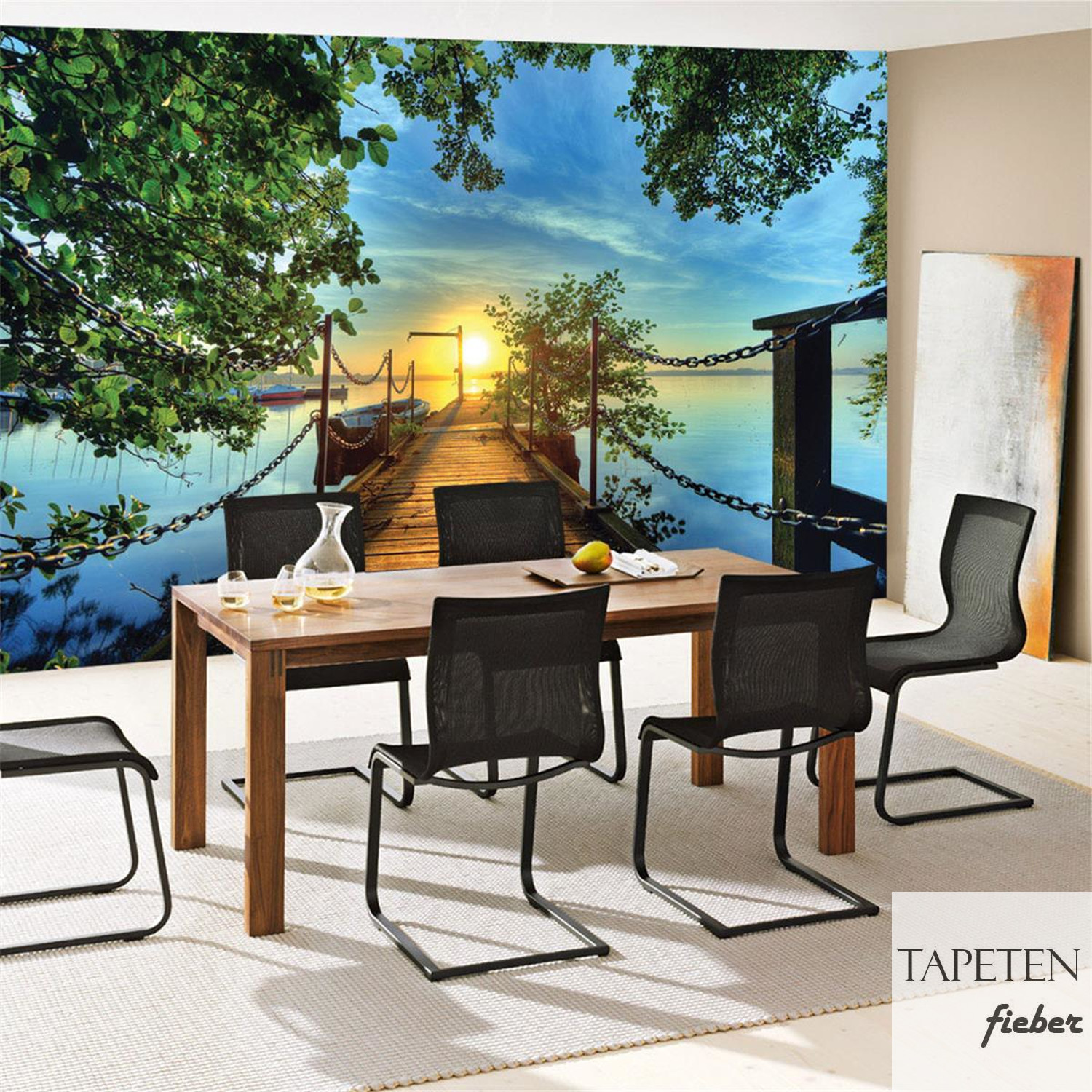 Fototapete Sonnenuntergang Baum Weg Steg Boot no. 636