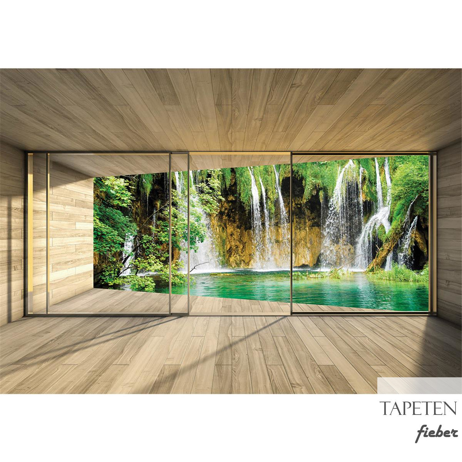 Fototapete Wasserfall Holzoptik Rahmen no. 1532